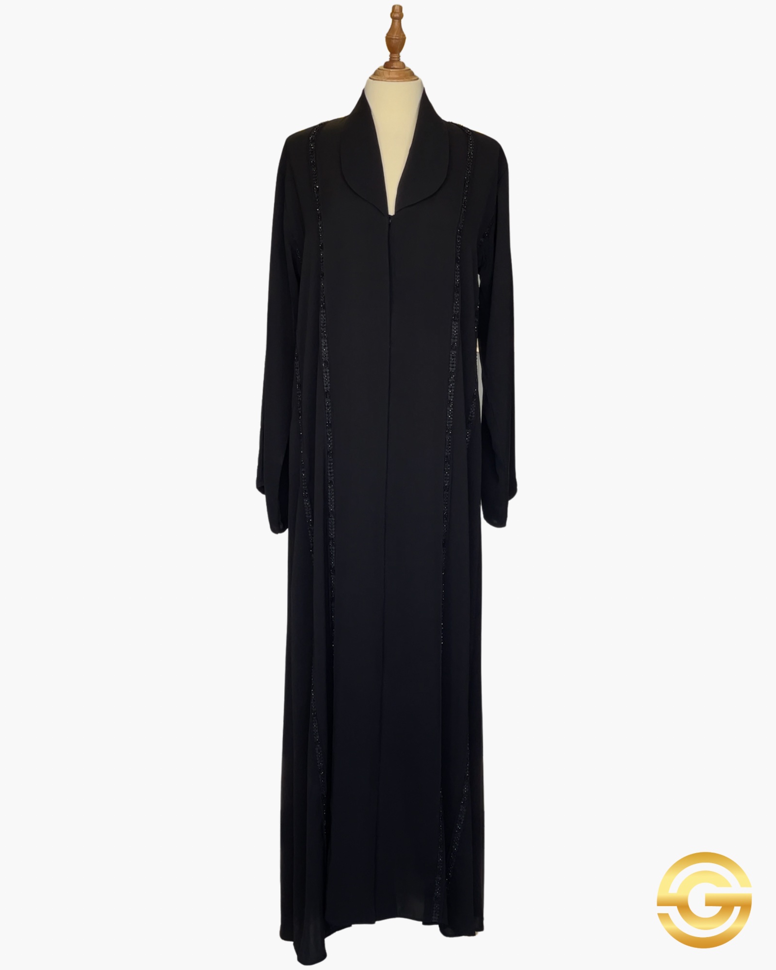 Aafra abaya is a stylish black abaya with a clean, sophisticated design.