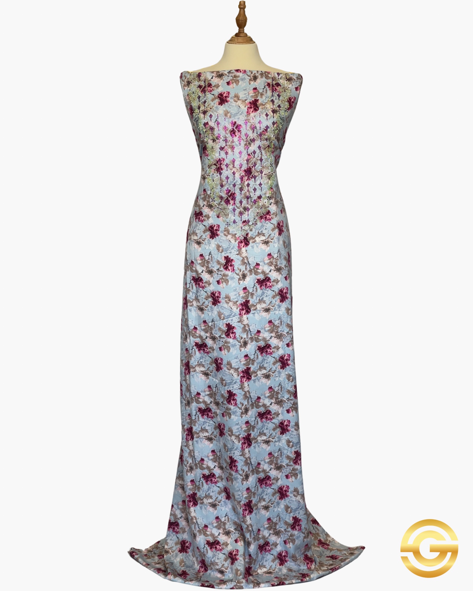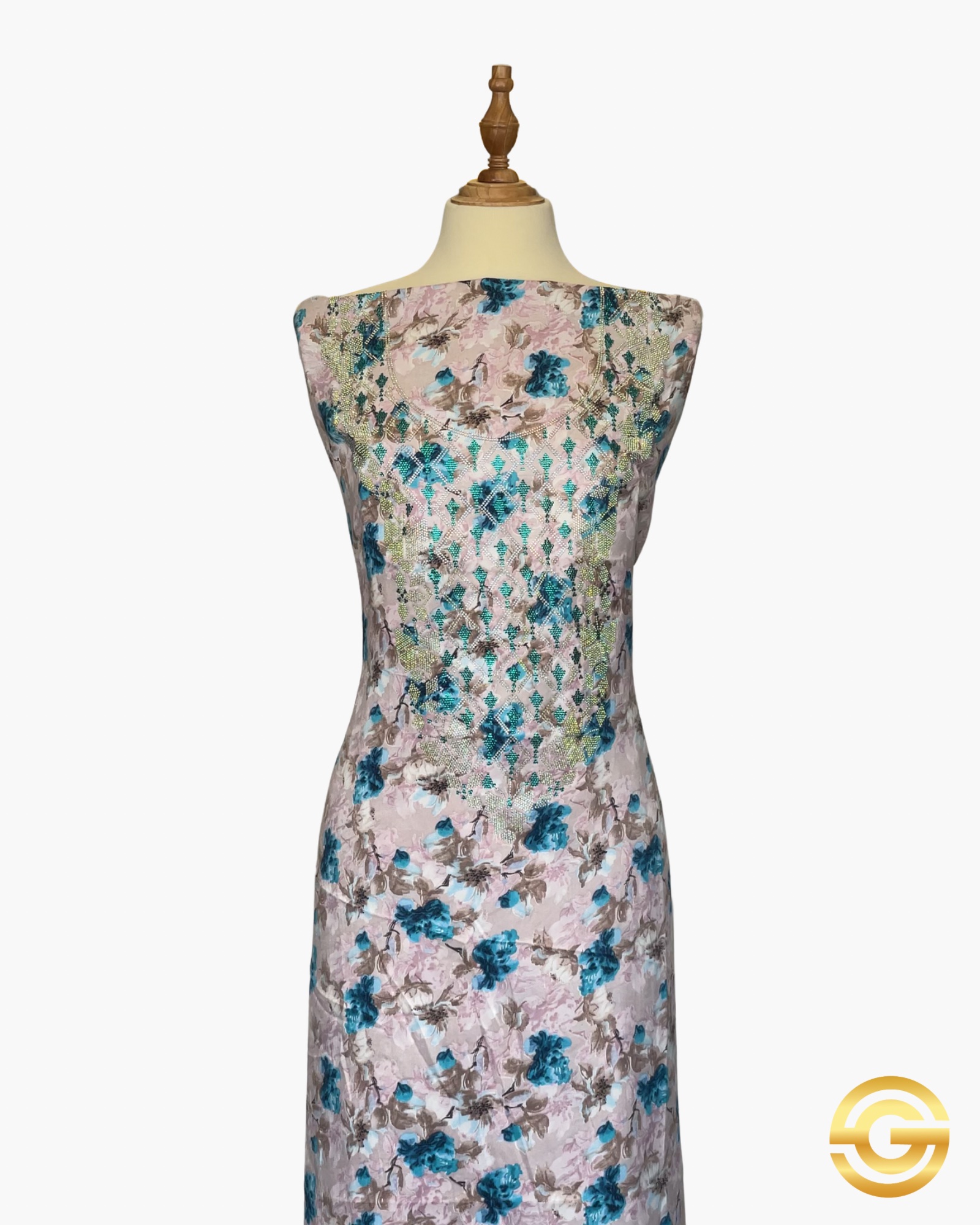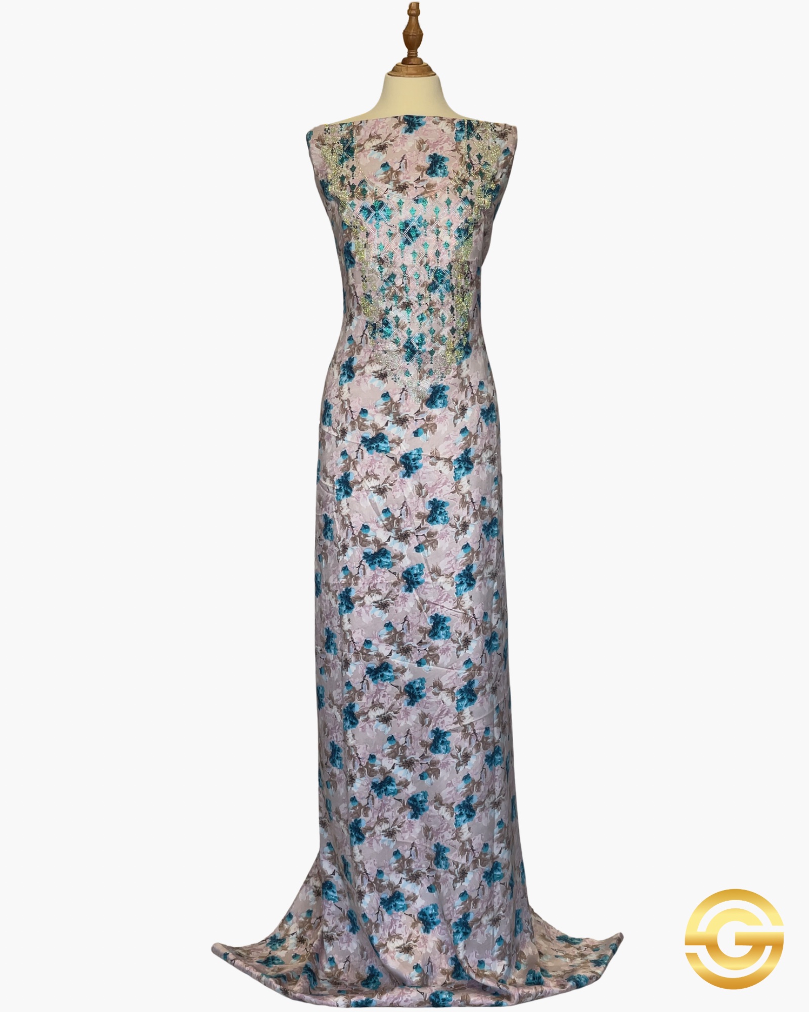 This piece is offered as unstitched fabric, giving clients the freedom to tailor it to their preferred style and perfect fit.