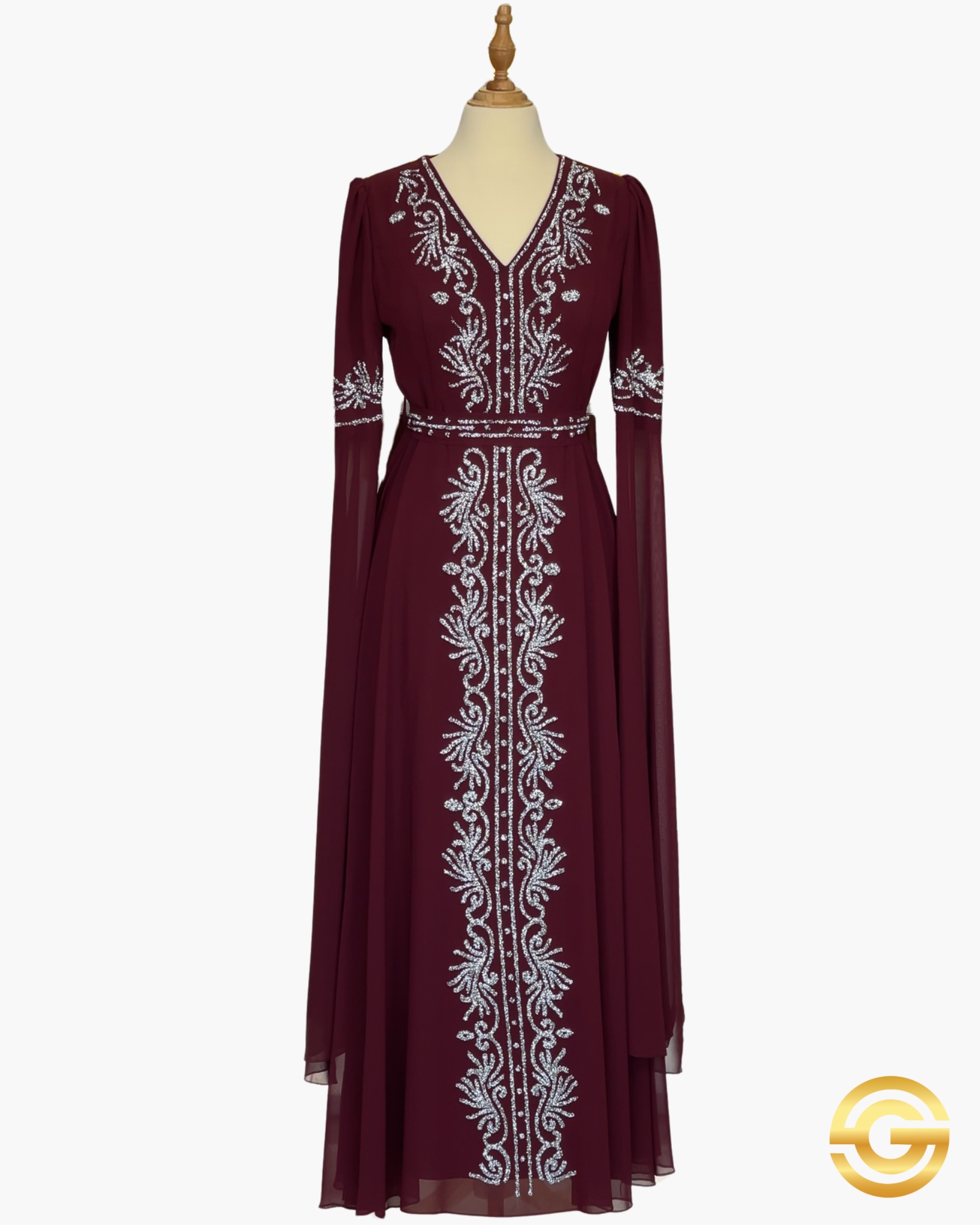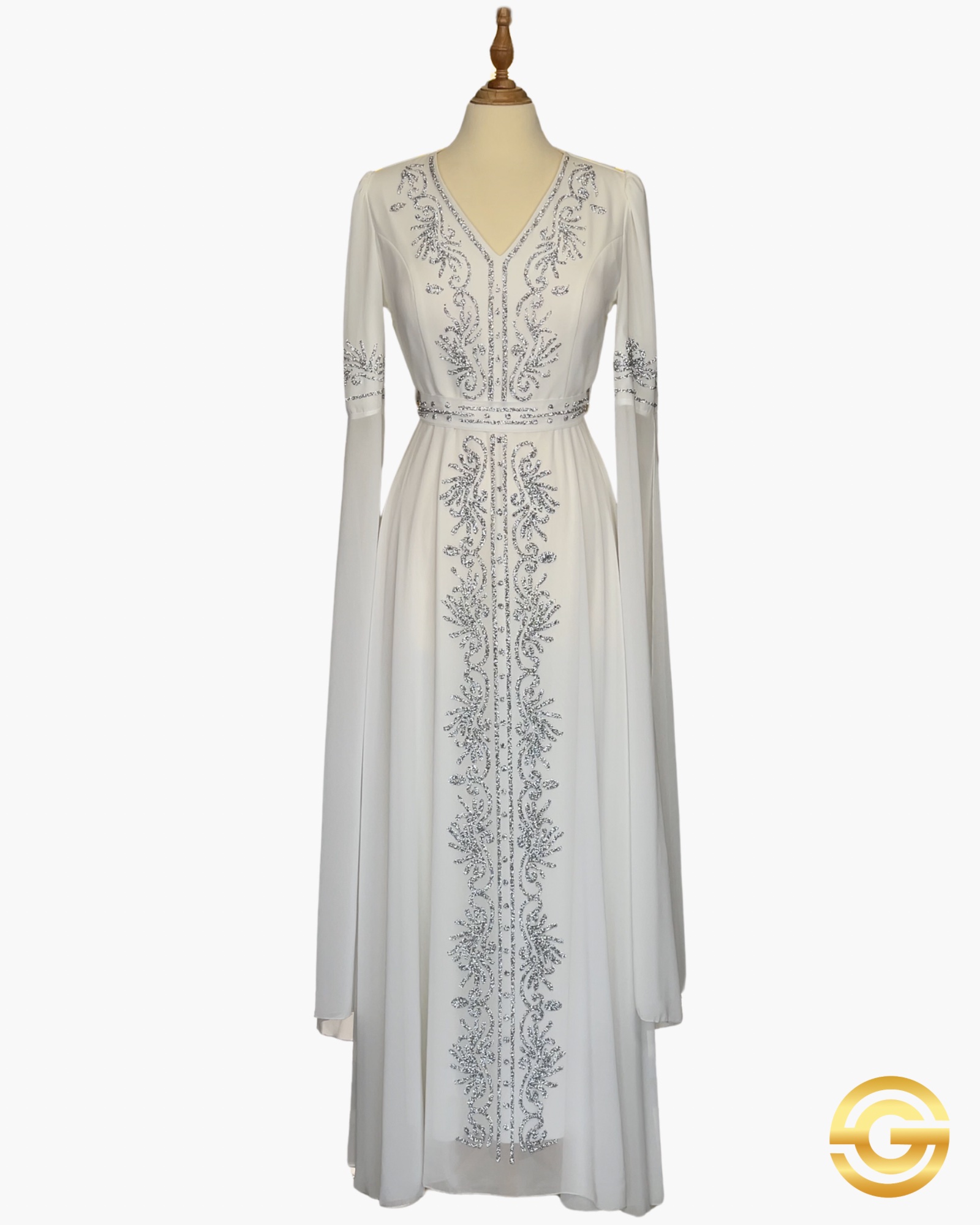 It features light chest padding and Turkish-style elbow-length sleeves with a gentle, flowing extension.