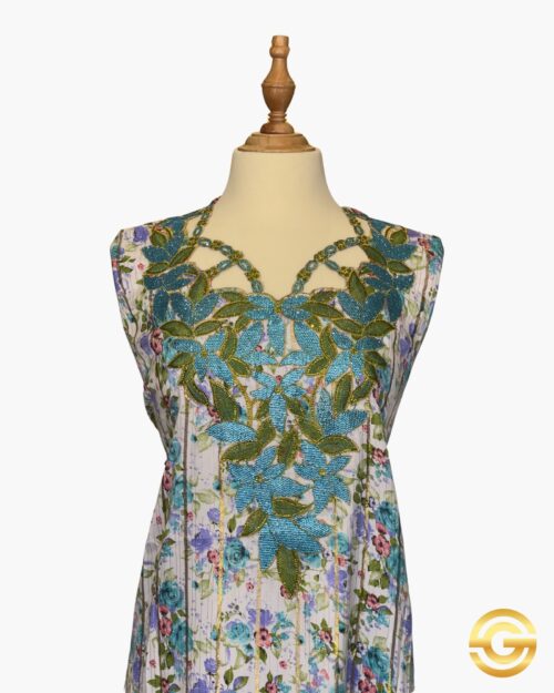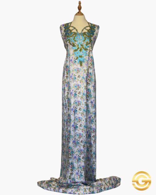 It is detailed with embroidery on the chest and sleeves, with 3D flowers beautifully enhanced with sparkling strass for a touch of sophistication, making it the perfect choice for special occasions.