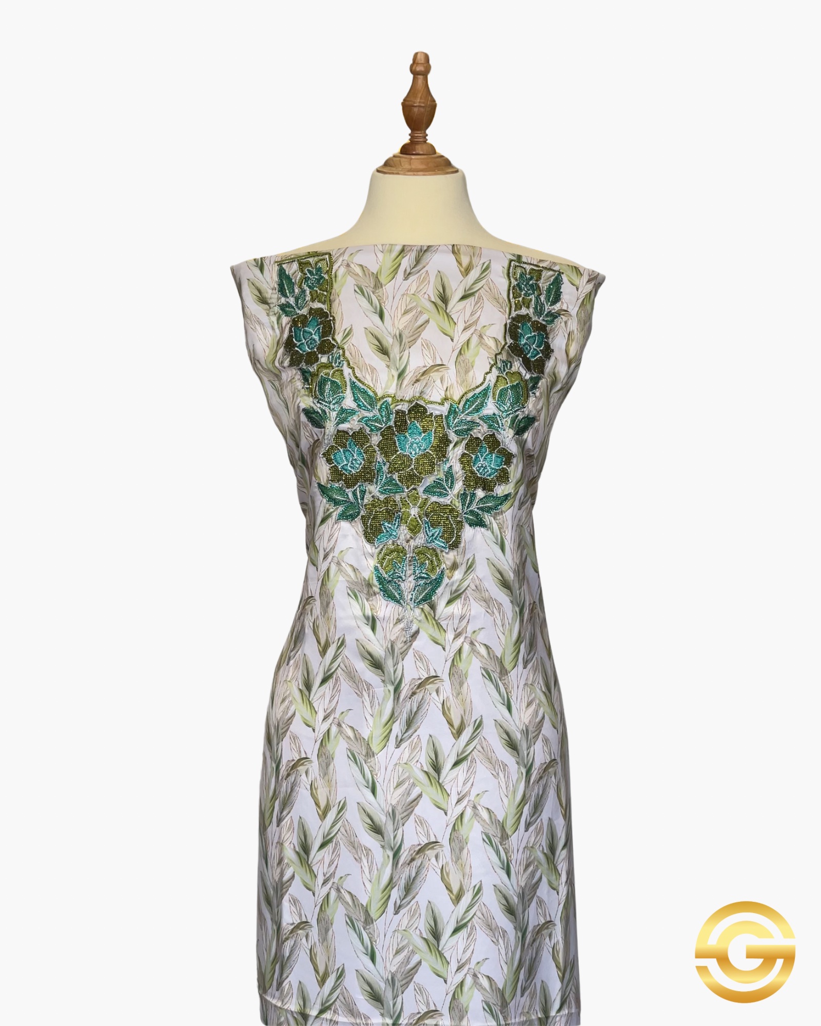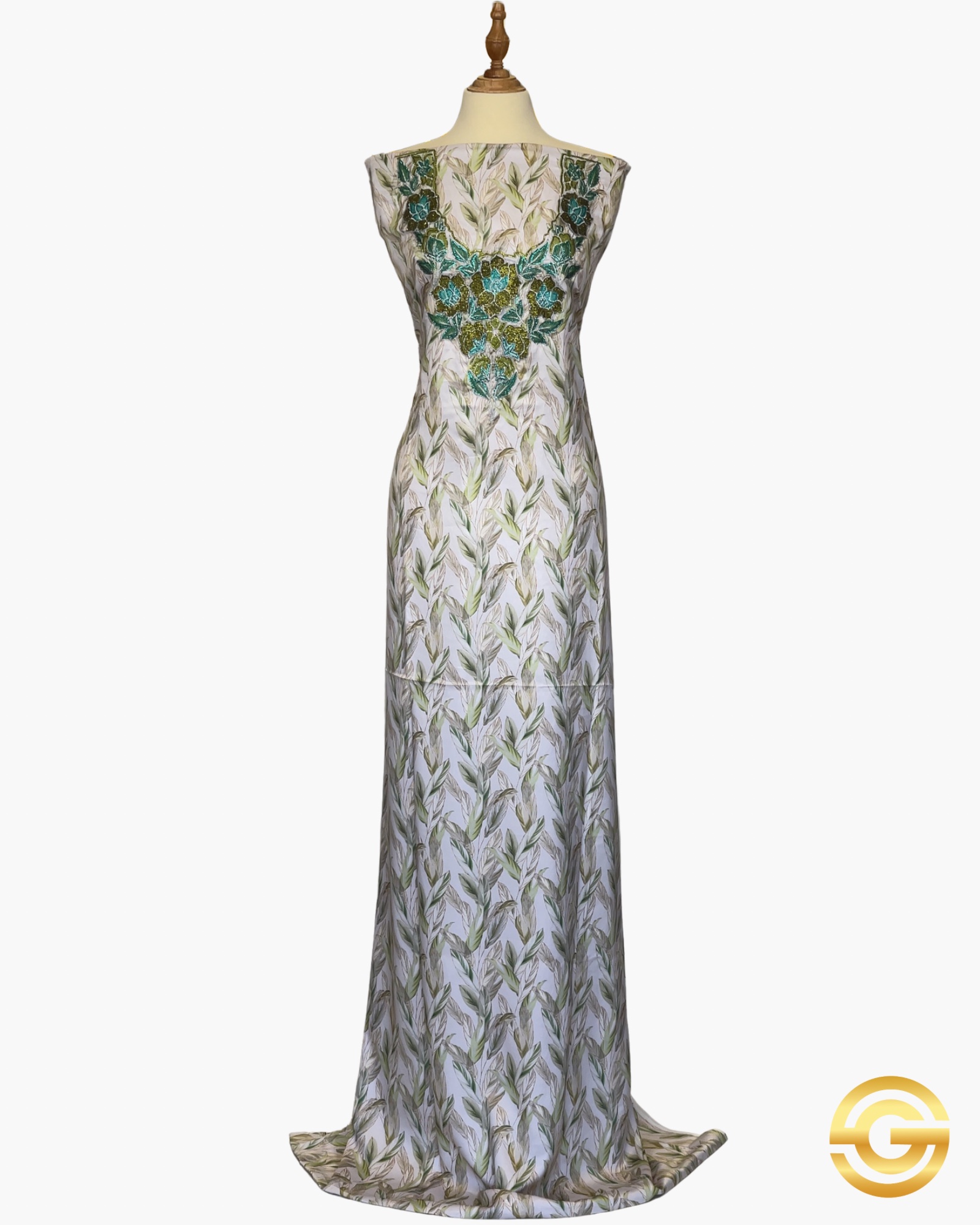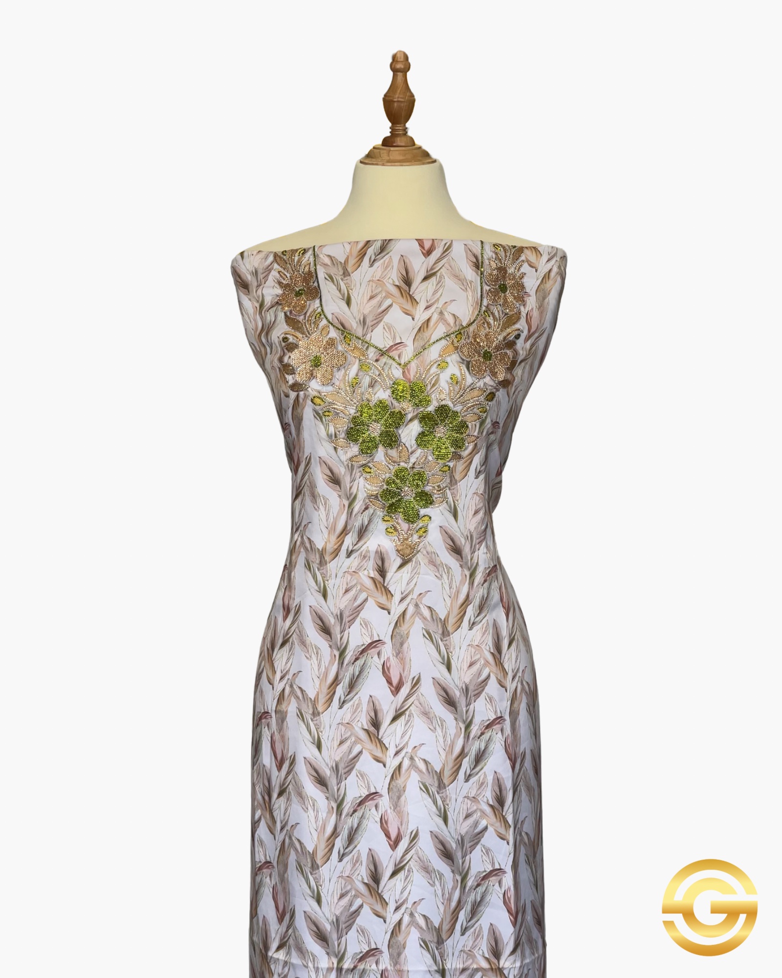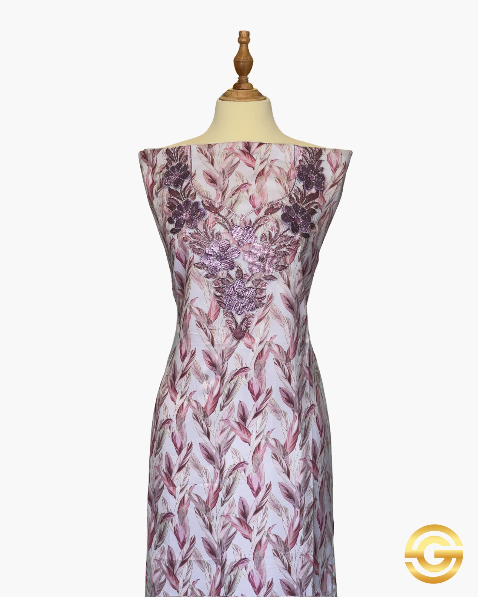 This piece is offered as unstitched fabric, giving clients the freedom to tailor it to their preferred style and perfect fit.