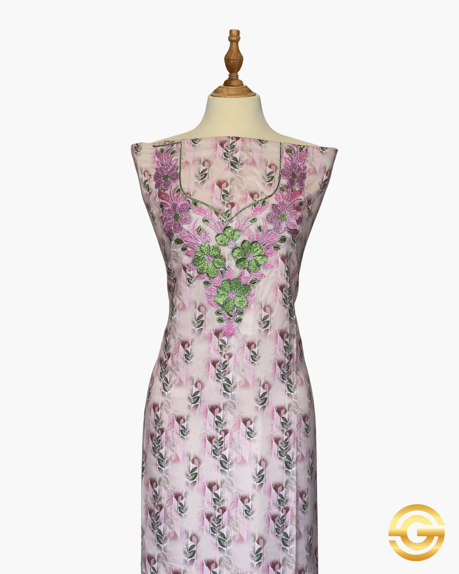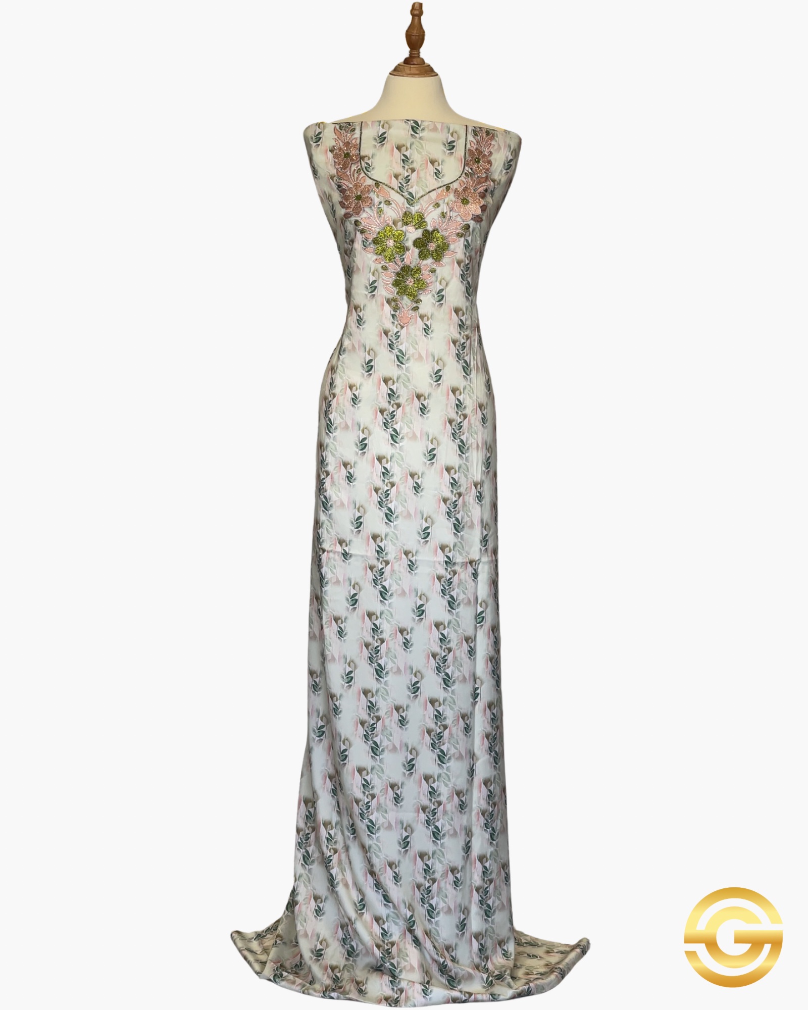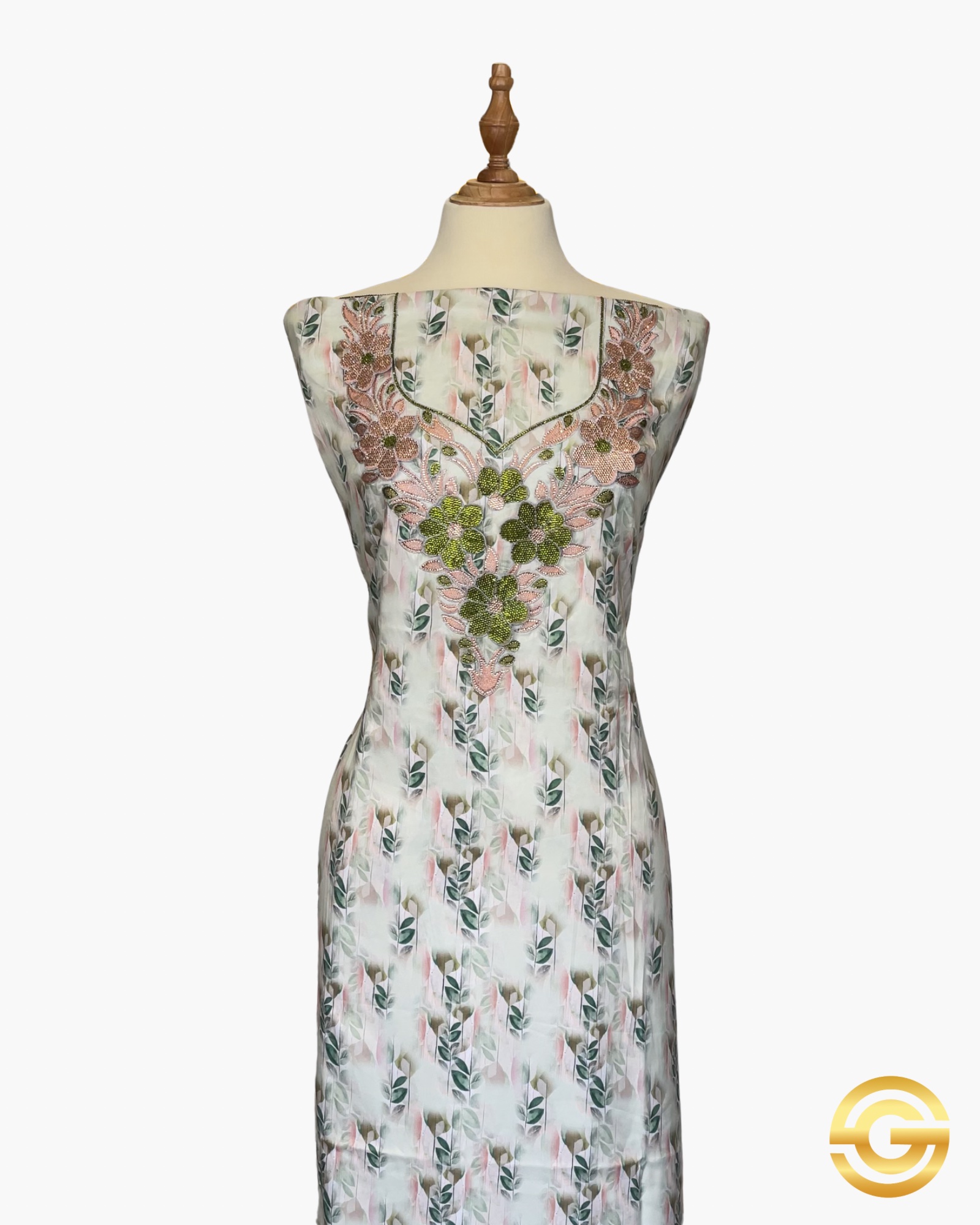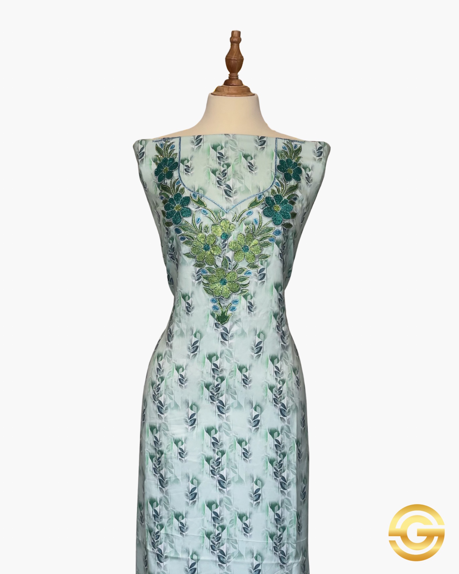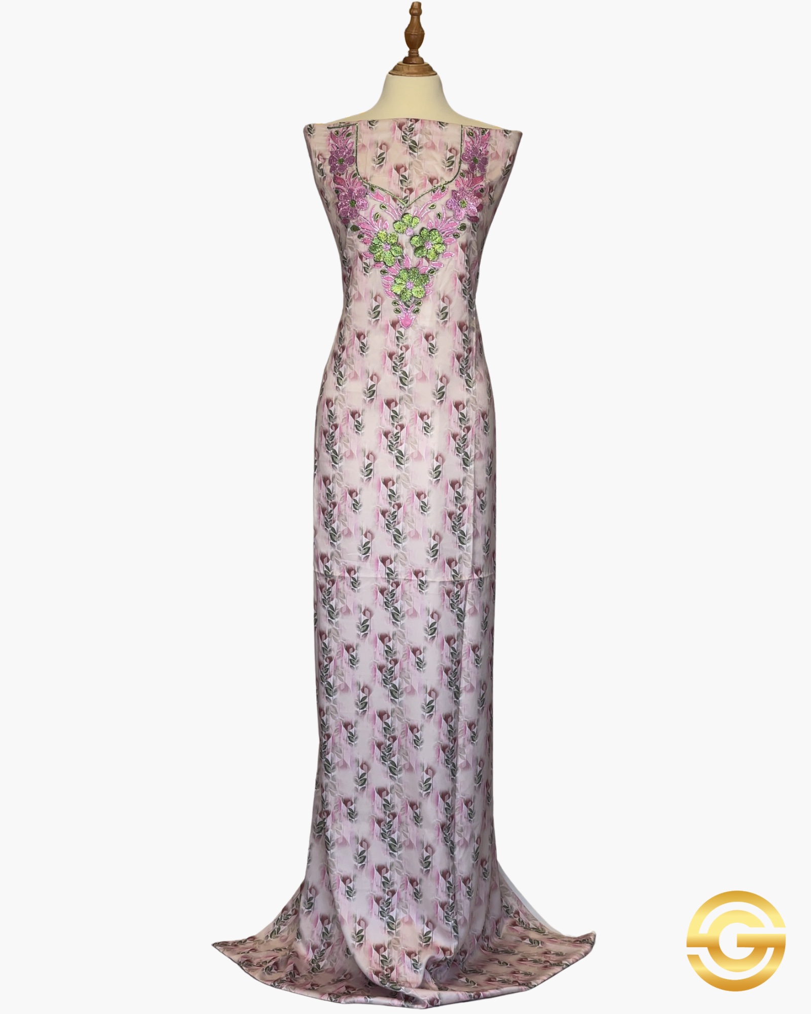 This piece is offered as unstitched fabric, giving clients the freedom to tailor it to their preferred style and perfect fit.